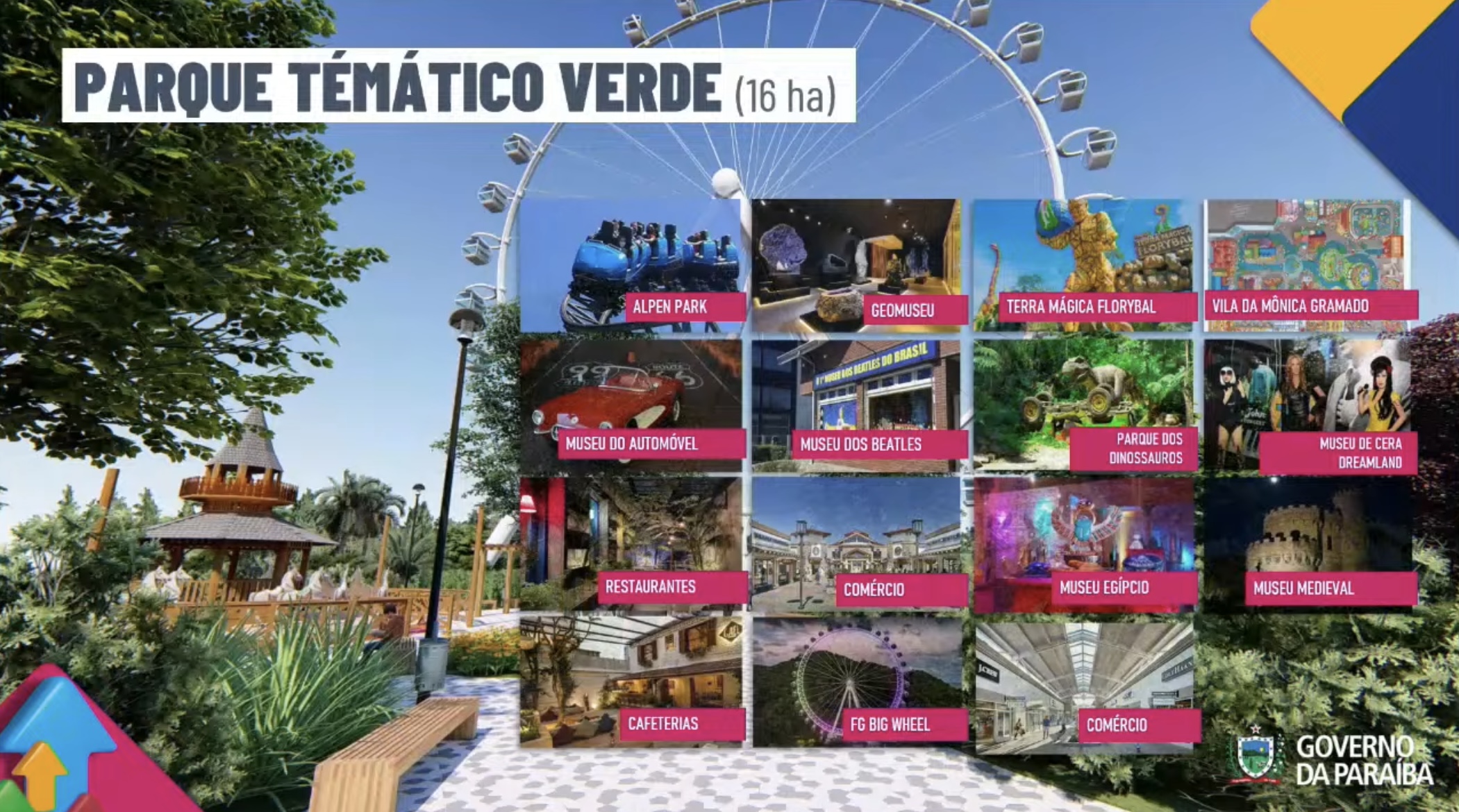 O projeto é descrito como um “parque temático verde”, porém nas imagens apresentadas para divulgação, vemos o futuro Parque Harmonia (Porto Alegre), Alpen Park (Canela), Vila da Mônica (Gramado), além da FG Big Wheel (Bal. Camboriú) e outros empreendimentos.